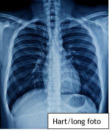 - Hiermee wordt met een zeer kleine dosis röntgenstraling een foto gemaakt van het hart en de longen. Hiermee kunnen grove longafwijkingen en vocht in de longen worden opgespoord.