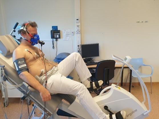- Indien een patiënt zowel een long- als hartaandoening heeft, kan met deze test worden beoordeeld welke aandoening de meeste beperking geeft. Bij deze test moet de patiënt fietsen met een masker op het gezicht die de zuurstofopname meet. Daarnaast wordt ook de bloeddruk en de hartslag gemeten.