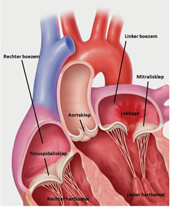 - Groter worden van de rechter hartkamer kan er toe leiden dat de afstand tussen de klepbladen groter wordt waardoor ze niet meer goed op elkaar aansluiten.