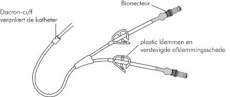 Er zit een bandje om de katheter, de zogenaamde Dacron-cuff. Hiermee zet de arts de katheter rond de huid vast. Deze Dracon-cuff voorkomt dat de katheter losraakt en dat bacteriën in het lichaam van uw kind kunnen binnendringen.