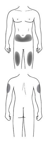 • De aanbevolen plaats is de voorzijde van de bovenbenen.