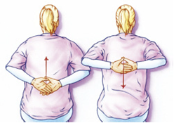 Leg uw handen zo laag mogelijk op uw rug en schuif ze langs uw rug naar boven.