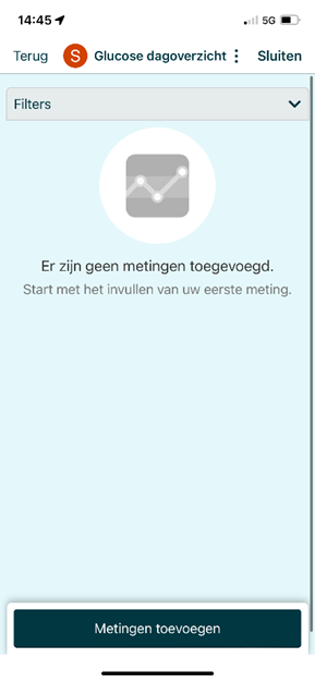 Klik op ‘Glucose dagoverzicht’. Deze stap is alleen nodig wanneer je meerdere metingen uitvoert bij andere afdelingen. Als dat niet zo is mag je deze stap overslaan.