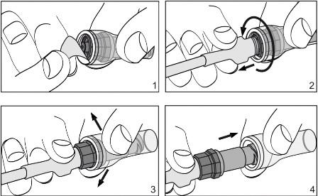 Nooit een klem zetten op het verstevigd deel ter hoogte van het schroefvormig aanzetstuk (zie tekening).
