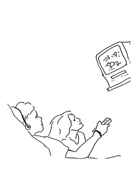 Je bent nu op de uitslaapkamer en je hebt de pleister met het lampje nog om je vinger en het infuus aan je hand.