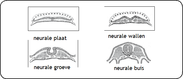 Afbeelding 1.1: De ontwikkeling van de neurale buis (dwarsdoorsnede)