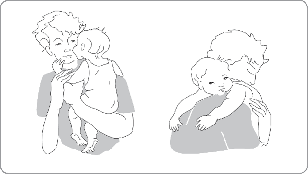 Afbeelding 1 en 2: Draaghoudingen waarin de hoofd- en rompbalans gestimuleerd worden.
