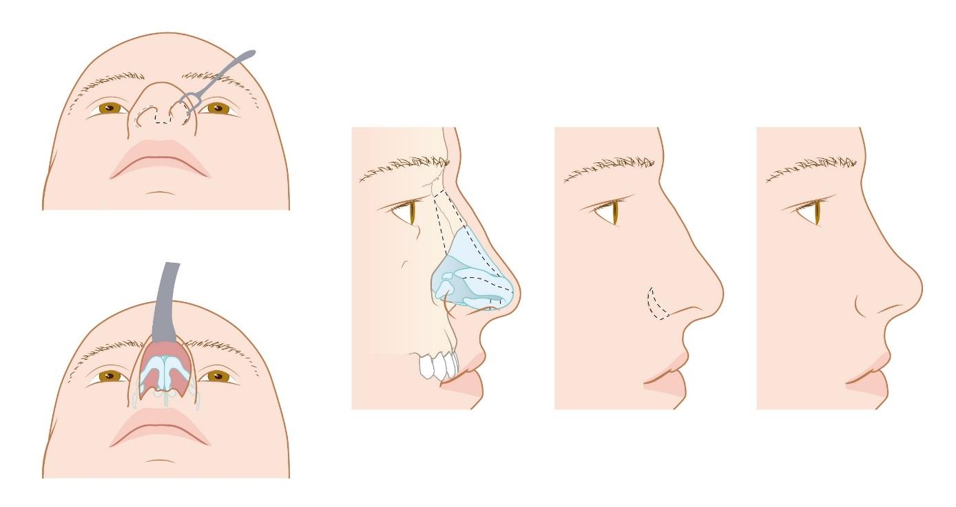 Figuur 6. Procedure van de neuscorrectie (rhinoplastiek).