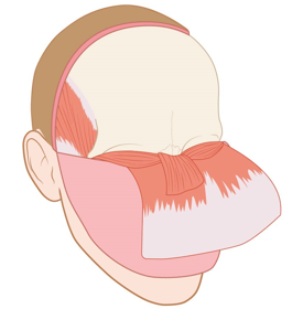 Figuur 2. Met deze snede wordt het voorhoofd vrijgemaakt