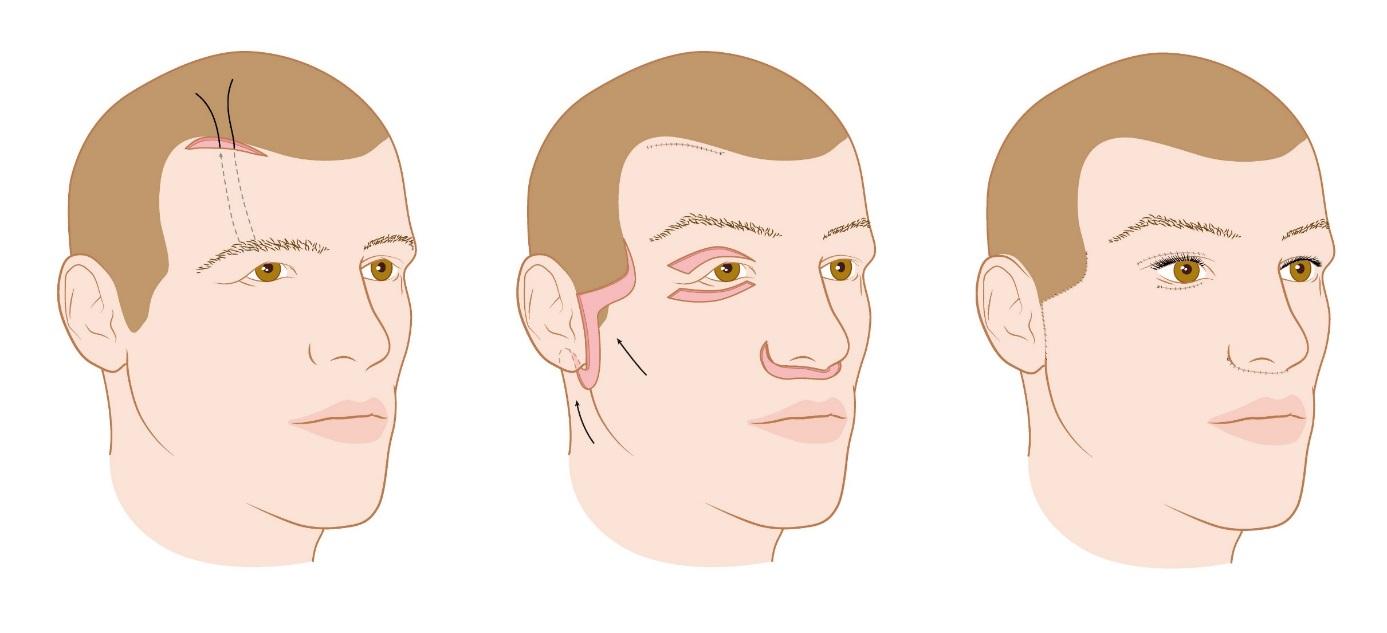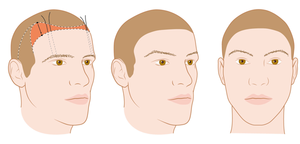 Door net voor en langs de haarlijn huid weg te nemen en huid te verschuiven, komt de haarlijn wat naar voren worden en worden de inhammen gecorrigeerd. Deze operatie wordt vaak gecombineerd met de voorhoofdcorrectie (cranioplastiek).