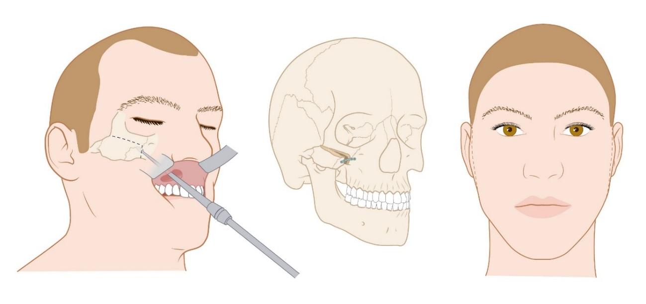 Figuur 7. Procedure van de jukbeencorrectie (zygoma osteotomie).