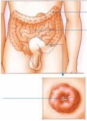 Figuur 1:Tijdens de operatie kunnen de anus, de endeldarm en een deel van de dikke darm worden verwijderd. Aan het einde van de dikke darm wordt een stoma aangebracht. © 2013 KWF Kankerbestrijding