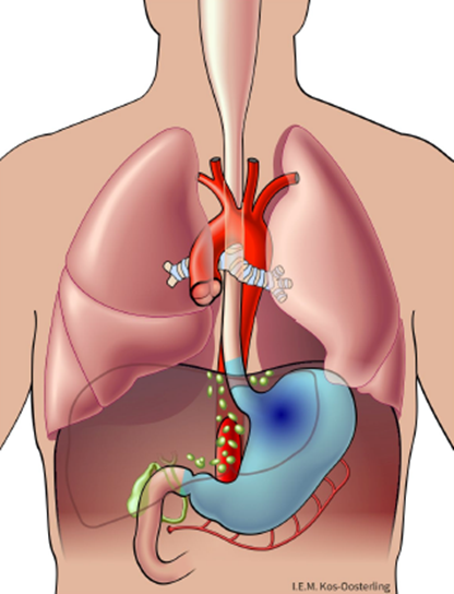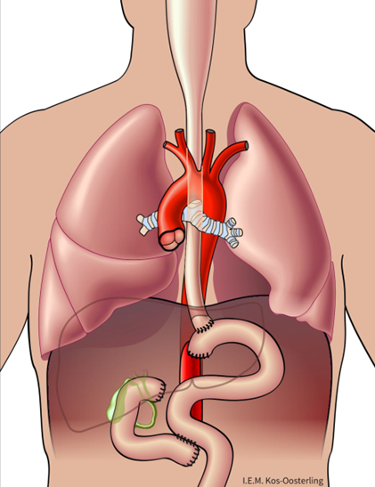 - Naadlekkage van de nieuwe verbinding tussen de slokdarm en de dunne darm: <10 %