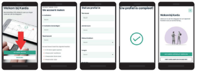 1. Open de Kardia-app en klik op ACCOUNT MAKEN.
