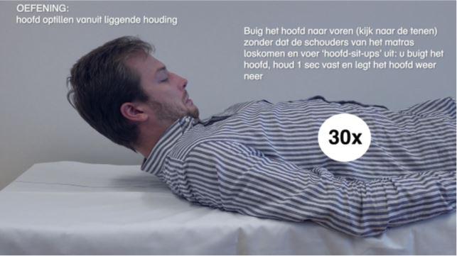 Forceer niet, voer de oefeningen ontspannen uit en ga niet verder met een beweging als er pijn ontstaat.