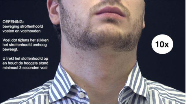 De oefeningen zijn onderverdeeld in hals/schouder en slik oefeningen.