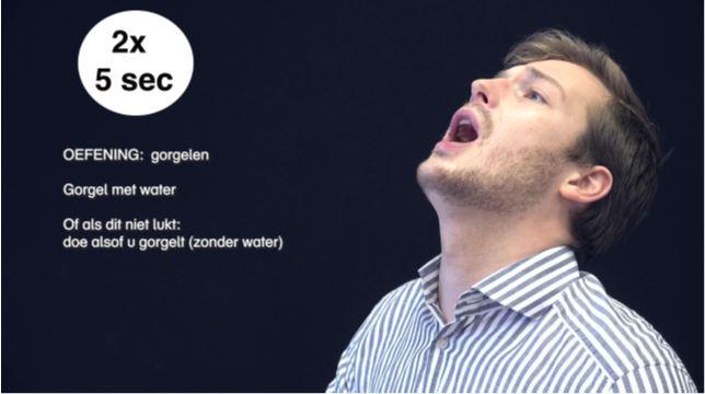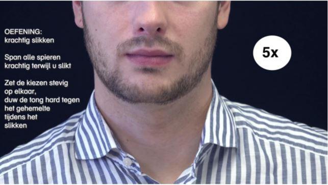 De oefeningen zijn onderverdeeld in hals/schouder en slik oefeningen.