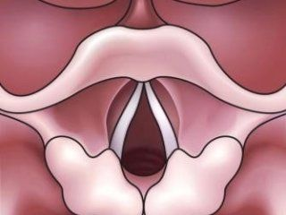 Hieronder ziet u een tekening van het normale strottenhoofd.