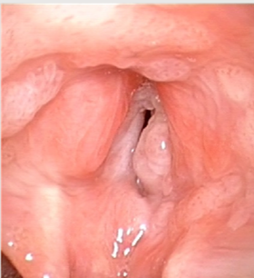 Figuur 2: larynxpapillomatosis op stembanden en in het strottenhoofd
