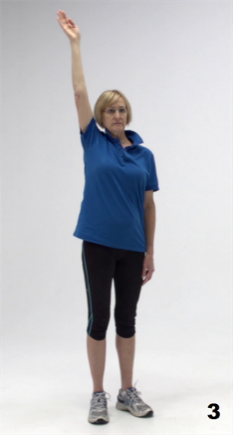 Uitgangshouding: Ga rechtop staan en breng één arm zijwaarts omhoog zover als u kunt.