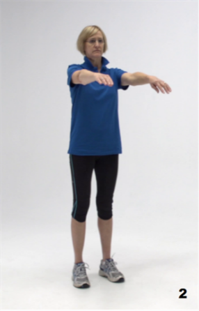 - Beweeg de armen op dezelfde wijze terug naar de beginpositie. Herhaal deze beweging.