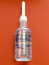 - Wanneer het moeilijk is om de flacon leeg te knijpen, dan kan de vloeistof met behulp van een spuit en de langere slang ingespoten worden.