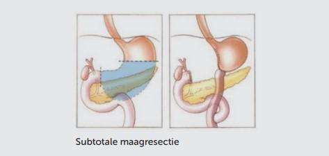 De chirurg verwijdert het onderste deel van de maag (het distale deel). Een klein deel van de twaalfvingerige darm wordt ook verwijderd. Hierna wordt de dunne darm op het resterende deel van de maag aangesloten.