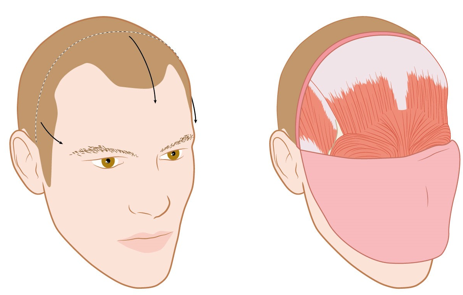 Door net voor en langs de haarlijn huid weg te nemen en huid te verschuiven, komt de haarlijn wat naar voren worden en worden de inhammen gecorrigeerd. Deze operatie wordt vaak gecombineerd met de voorhoofdcorrectie (cranioplastiek).