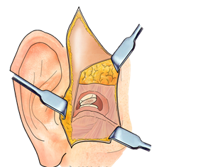 Soms is het echter nodig om het stukje van het kaakkopje via de buitenkant te verwijderen (‘extraorale condylectomie’), bijvoorbeeld omdat er onvoldoende ruimte is om het stukje via te binnenkant te bereiken.