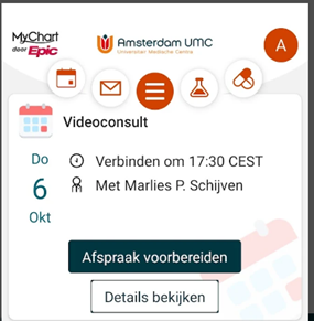 - Bij een videoconsult: Zorg dat u op tijd inlogt en klaar zit voor het eerste consult