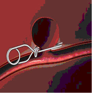 Eén of meerdere klemmetje (clipjes) worden aangebracht op de uitstulping: het clippen van het aneurysma.