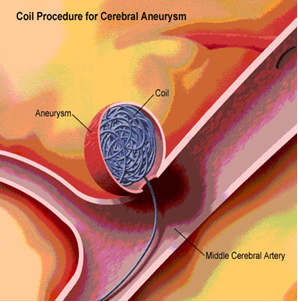 Bij het ‘coilen’ is geen toegang via de schedel nodig. De arts behandelt het aneurysma met een kathetertechniek via de bloedvaten. De behandeling gebeurt onder volledige narcose door een gespecialiseerde interventie-neuroradioloog. Net als bij een angiografie wordt een katheter via de liesslagader ingebracht. Vervolgens wordt een nog kleiner kathetertje (microkatheter) opgevoerd tot in het aneurysma. De radioloog plaatst kleine flexibele platina spiraaltjes (coils) in het aneurysma. De coils zorgen ervoor dat het bloed niet meer het aneurysma in kan stromen. Hierdoor zal het bloed tussen de coils gaan stollen. De behandeling duurt meestal 1-2 uur.