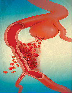 Zo’n uitstulping noemen we een aneurysma. Door de bloeddruk en het bloed dat door de hersenvaten stroomt, rekt het aneurysma steeds verder uit. Dit is vergelijkbaar met een ballon die steeds verder opgeblazen wordt. Op het moment dat de wand van het aneurysma te zwak is geworden, barst het aneurysma open, en ontstaat er een bloeding. Door bloedstolselvorming en door de toegenomen druk in het hoofd, zal er een zwakke afdichting van het aneurysma ontstaan waardoor de eerste bloeding meestal tot stilstand komt. Om te voorkomen dat er opnieuw een bloeding optreedt, is het nodig dat de arts het aneurysma zo snel mogelijk via behandeling afsluit.
