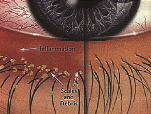 Blefaritis gaat vaak gepaard met jeuk, irritatie en soms een rood oog en schilfers aan de wimperharen (vooral in de ochtend).
