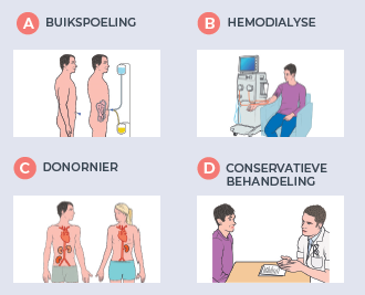 Met de resultaten kan de arts beter inschatten hoe buikspoeling, hemodialyse, een donornier of conservatieve behandeling voor u zal zijn. Zo kunt u samen met uw arts en naasten beter de behandeling kiezen die bij u past.