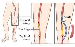 Met behulp van een eigen bloedvat of een kunststofbloedvat wordt vanaf de lies een omleiding (bypass) gemaakt. De chirurg kijkt welk soort omleiding voor uw het meest geschikt is. Wanneer uw eigen bloedvat wordt gebruikt, is dit meestal de lange oppervlakkige ader aan de binnenzijde van het been. Deze ader kunt u missen, omdat dieper in het been de belangrijke aders liggen. De bovenste aansluiting van de bypass zal ter hoogte van lies op de liesslagader worden gemaakt. Aan de hand van tevoren gedaan duplexonderzoek of angiografie wordt een plaats gezocht in de ader onder de afsluiting.
