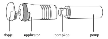- Gel aanbrengen, richt de spuitpunt op de applicator en druk deze in, als er meer dan 1 pompje is afgesproken dan de hoeveelheid gewenste pompjes.
