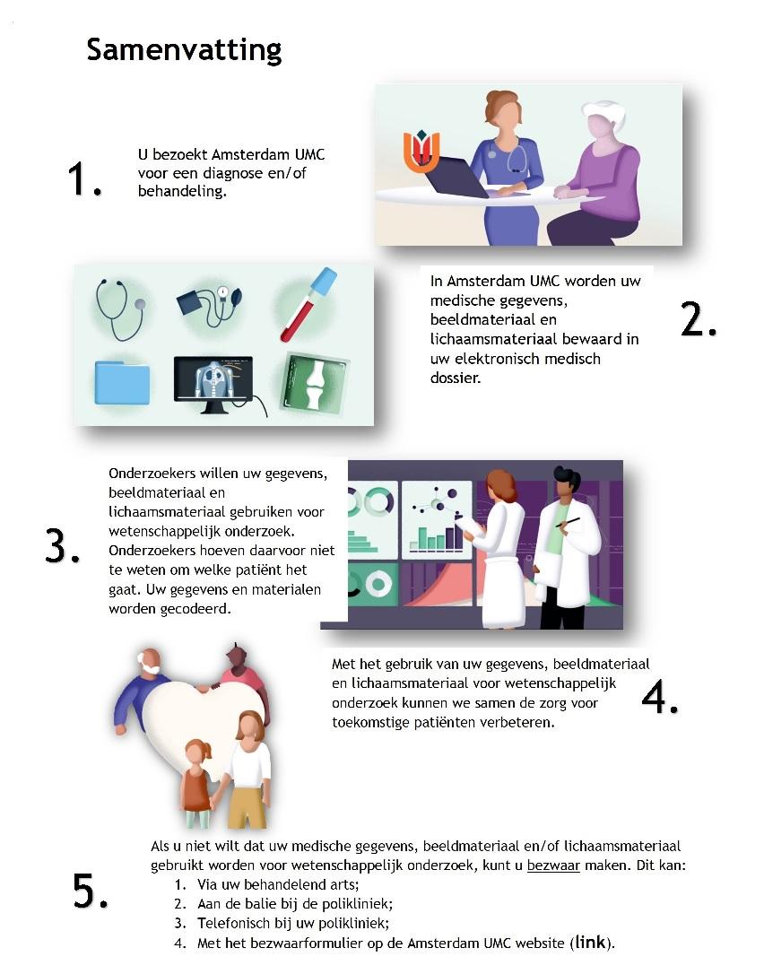 Als u geen bezwaar maakt, kunnen uw medische gegevens, beeldmateriaal en/of lichaamsmateriaal gebruikt worden voor wetenschappelijk onderzoek. Ook dit heeft geen gevolgen voor de zorg die u krijgt binnen Amsterdam UMC.