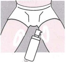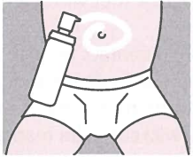 - Gel aanbrengen, richt de spuitpunt op de huid op het gebied afwisselend rond de navel en op de binnenkant van de twee bovenbenen.