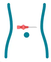 Pak de sonde vast. Duw de sonde twee keer op en neer in het fistelkanaal (dompelen).