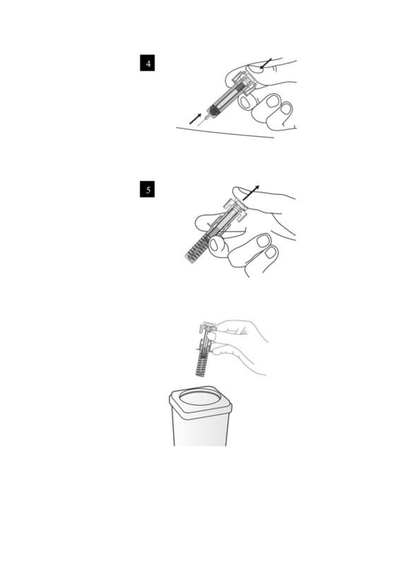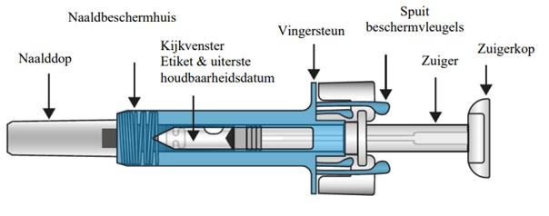 Gooi de gebruikte spuit onmiddellijk weg in een naaldencontainer. De spuit mag nooit opnieuw gebruikt worden.