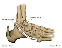 Figuur 2: De peroneusspieren. Het litteken komt in de richting van de beide spieren (zwarte streep). De longus snijden we door en hechten we vast aan de brevis.