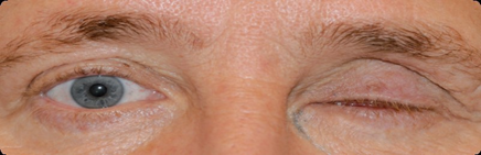 Figuur IV: het geopereerde oog zit doorgaans dicht als er nog geen oogprothese in zit.