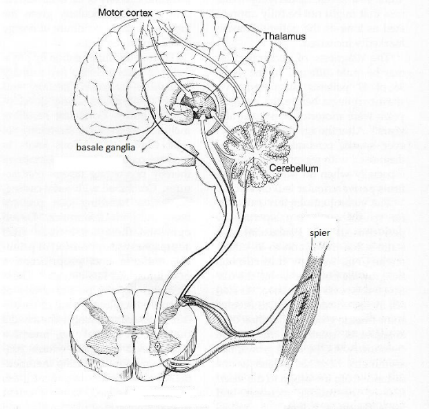 Het ruggenmerg krijgt dus zowel informatie en commando’s vanuit de spieren (figuur 1b), als commando’s vanuit de hersenen (figuur 1a). Een goede coördinatie tussen deze twee commando’s is van belang om te zorgen dat de spierspanning goed is en bewegingen soepel kunnen verlopen.