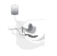 De slangetjes van de katheters worden op uw been geplakt en aangesloten op de computer. Daarnaast worden op uw bovenbeen en billen nog 3 plakkertjes bevestigd om de activiteit van de bekkenbodem te meten. - Voor het vervolg van het onderzoek moet u rechtop zitten.