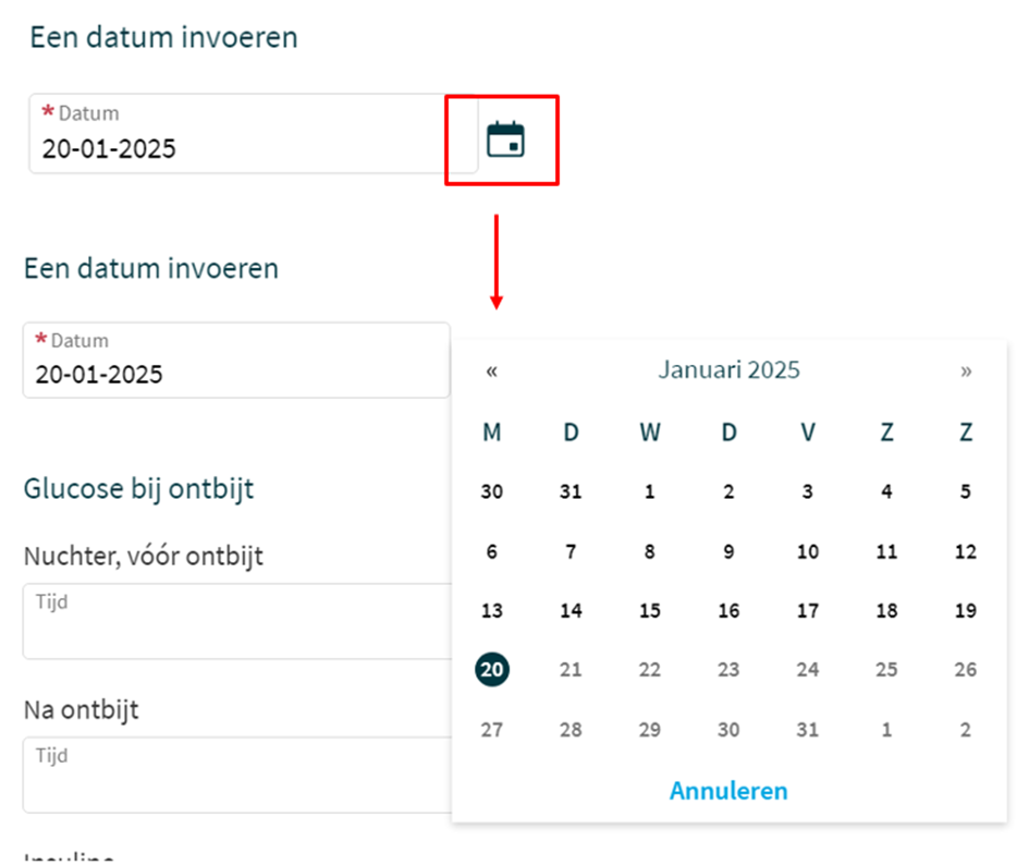 Kies de datum waarvoor u de glucosemetingen wilt doorgeven.