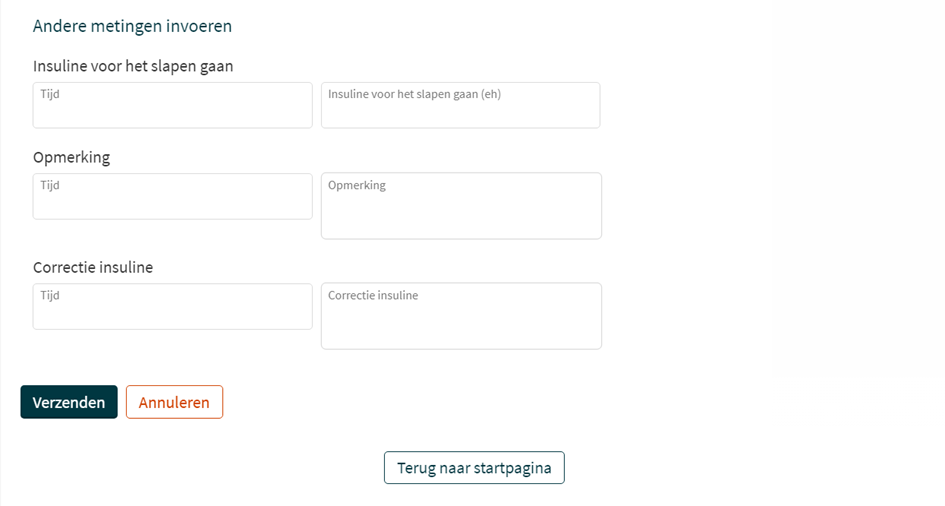 - Vul ook per onderdeel het tijdstip in waarop u gemeten heeft.