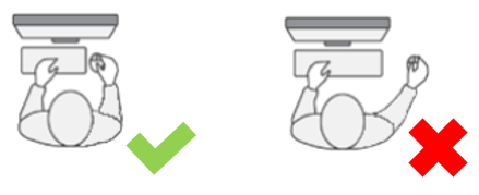 Het is belangrijk dat u niet ver reikt om te werken met het toetsenbord en/of de muis, zoals hieronder is afgebeeld. Daarnaast zijn er mogelijkheden om het type toetsenbord en/of muis te wijzigen, in sommige gevallen zorgt dit voor een vermindering van klachten.