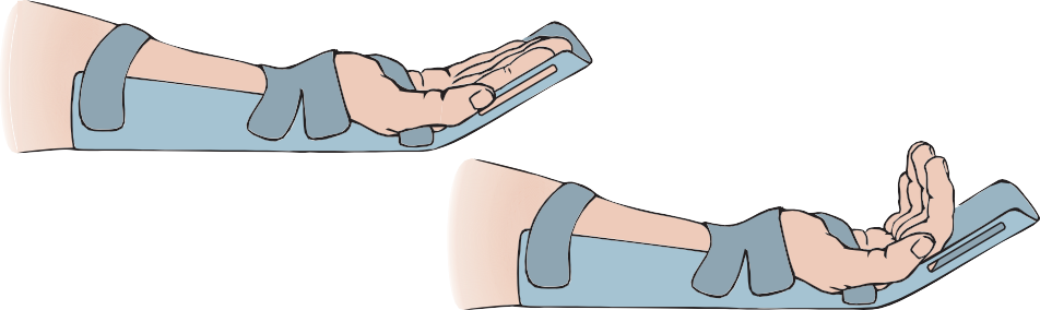 Uitgangspositie: ontspannen houding van de hand in de spalk.