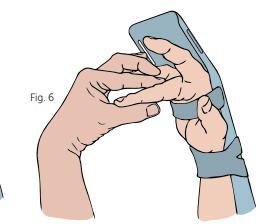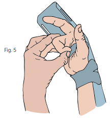 - Buig met behulp van de goede hand de vinger zoals in fig. 5.